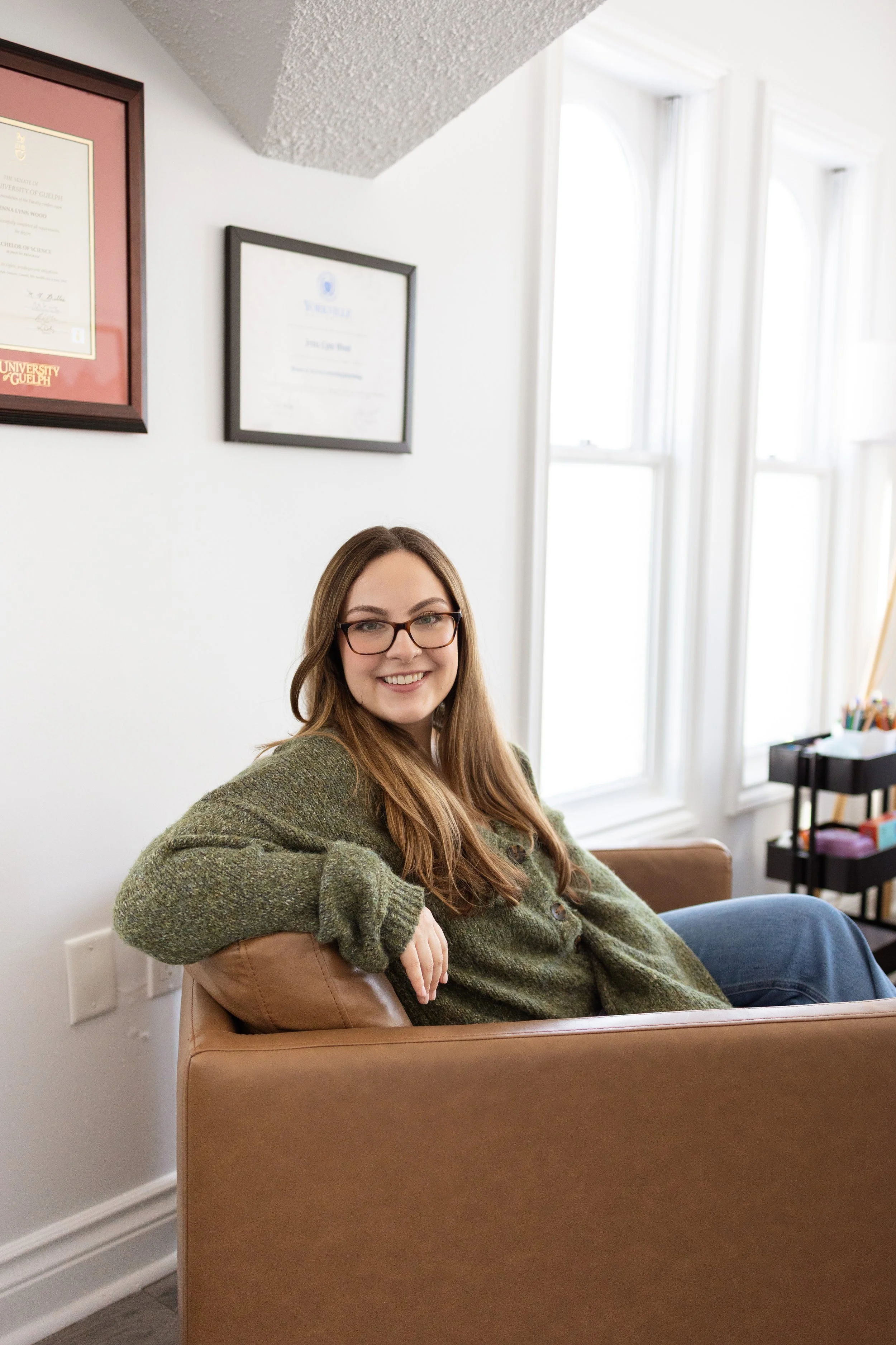 In the therapy space, I bring my full, human self. My lived experience with ADHD allows me to hold space with authenticity and understanding. I’m passionate about working with youth and adult women navigating ADHD and anxiety. I often work with adults who receive a late diagnosis of ADHD, autism, AuDHD or who are self-identifying. I thoroughly enjoy working with those who are deep feelers and thinkers, and who were often told or felt that they are “too sensitive”, “too much”, or “not enough”. My approach is non-pathologizing and strengths-based—I work to co-create a space where clients can explore their inner world with compassion and curiosity.